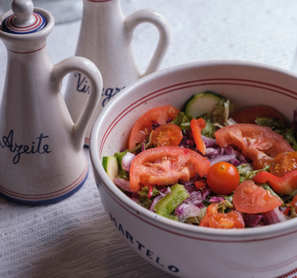 Nesta cozinha, onde imperam saberes tradicionais, desde os vegetais fresquíssimos, colhidos na hora e produzidos sem recurso a químicos, passando pelo peixe fresco do nosso mar, até às melhores carnes trabalhadas a lenha, em receitas ancestrais, com todos os cuidados de higiene e segurança alimentar, reside a alma da tasca da Quinta do Martelo.